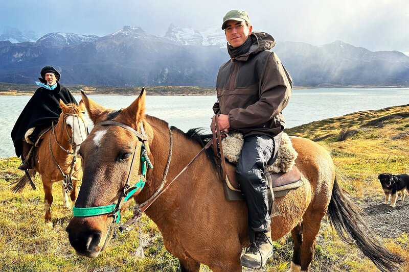 Simon Reeve (vorne) mit Gaucho Celustiano Taibo in Patagonien