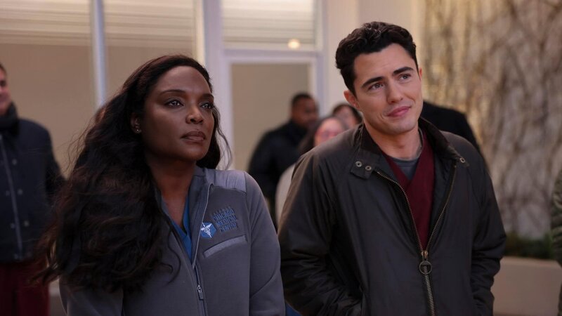 • Chicago Med Staffel 10 Folge 10 Unerwarteter Besuch: Jessy Schram als Dr. Hannah Ashe, Erin Anderson als Lizzy Asher (von hinten)