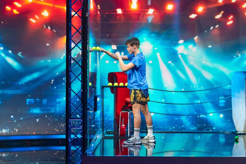 • „Balance-Ball-Duell“ Carlie Ellen (11) und Leon Noel (12), Kai Pflaume.