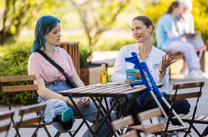 Dr. Julia Berger (Mirka Pigulla, r.) versucht Gabby Walther (Luna Kuse, l.) dazu zu bringen mit ihrer Mutter in Kontakt zu treten.