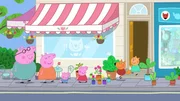 Peppa und ihre Familie unterstützen die Bewohner:innen beim Anlegen eines Dachgartens. Sie benötigen Blumen, Büsche und kleine Bäume in großen Töpfen. Herr Bulle hilft mit einem Lastwagen und Kran. Frau Ente erhält eine Überraschung.
