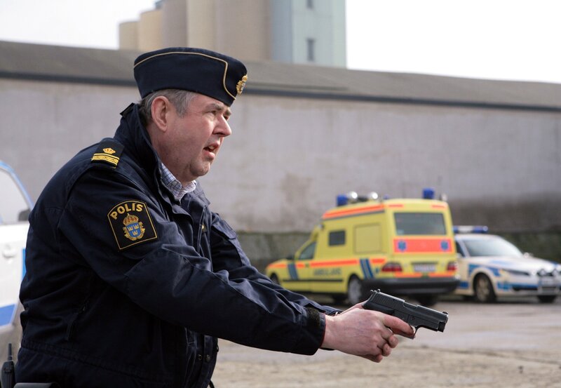 • Sven Adelgren (Michael Segerström) will in einer Polizeiuniform fliehen.