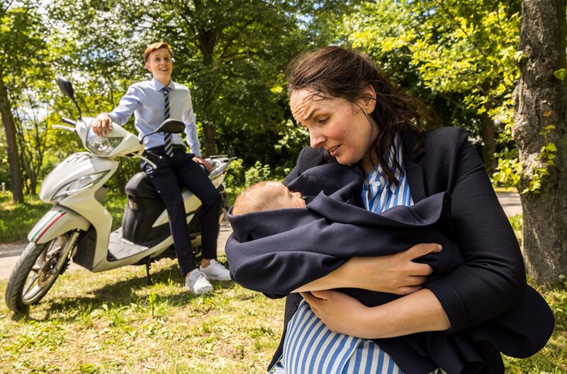 Assistenzärztin Sofia Galura muss sich ein paar hundert Meter von der Klinik entfernt um die hochschwangere Jördis Laurenz kümmern, die dort vom Motorroller ihres Azubis Hanno Meyer steigt. Das Baby kommt. Sofia ruft in ihrer Überforderung Dr. Ben Ahlbeck an, der sie telefonisch unterstützen soll, bis er selbst bei der Gebärenden angekommen ist. Doch es ist zu spät: Das Kind kommt in den Händen von Hanno zur Welt - vor dem Johannes-Thal-Klinikum. Während Ben Sofia das nötige Feingefühl gegenüber der frischgebackenen Mutter abverlangen muss, beschleicht ihn das Gefühl, dass die Patientin in ihrer neuen Rolle als Mutter einen großen emotionalen Ballast aus ihrer Vergangenheit bewältigen muss. Dann scheint auch noch ihr Azubi und Geburtshelfer Hanno eine entscheidende Rolle zu spielen. Dr. Matteo Moreau hat ein Problem: Wenn es nach Ben geht, dann soll Tamar Hummel ihren ersten Hautschnitt bei Moreau machen. Nie im Leben. Zum Glück ist kein Schnitt notwendig.