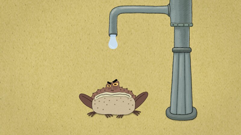 Lenas Hund hat Angst vor unheimlichen Geräuschen, die aus seiner Hütte kommen. Hat sich da etwa ein Monster seine Hütte unter den Nagel gerissen? Gerade jetzt, wo es draußen so heiß ist. Lenas Hund holt die anderen Tiere zu Hilfe, aber selbst die größten von ihnen trauen sich nicht in die Hütte. Dafür aber das kleine Küken. Es entdeckt eine Unke, die in der Hütte Schutz vor der sengenden Sonne sucht und keine Anstalten macht, wieder zu gehen...