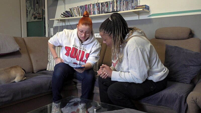 Leann (li.) und Mutter Jannie rufen beim Jobcenter an