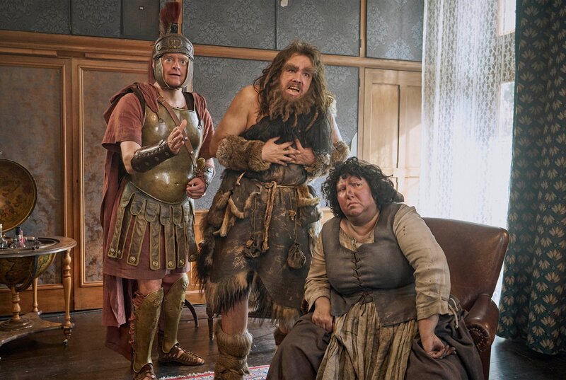 • Die Geister heißen Ralf willkommen. (v.l.n.r.) Claudius (Max Giermann), Urs (Jan van Weyde), Griet (Meltem Kaptan).