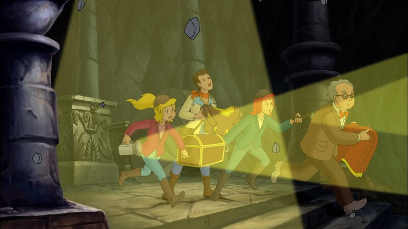 Frau Martin ist knapp bei Kasse und will Topsy verkaufen. Bibi und Tina sind entsetzt und wollen das verhindern. Als sie ein altes Hufeisen finden, glauben sie, einen Teil eines Schatzes entdeckt zu haben, und bringen es ins Heimatmuseum. Mit dem Finderlohn wollen sie Topsy retten. Doch leider sagt eine Frau, die sich als Museumsdirektorin ausgibt, das Hufeisen sei nichts Besonderes, und wirft es weg. Bibi und Tina machen sich enttäuscht auf den Heimweg, als der echte Museumsdirektor auftaucht und ihnen erklärt, dass die Frau eine Betrügerin ist. Sie sei auf der Suche nach dem legendären Schimmelreiterschatz und schrecke auch vor Betrug nicht zurück. Das Hufeisen, das Bibi und Tina gefunden haben, sei ein wertvoller Hinweis auf den Schatz. Gemeinsam machen sich die Mädchen mit dem Direktor auf die Suche nach der Betrügerin.