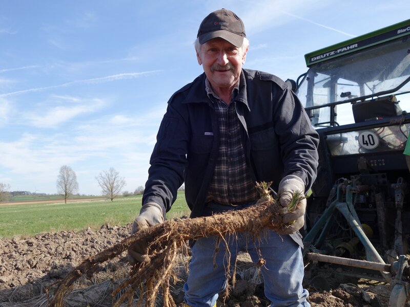 Gleich nebenan liegt die beeindruckende Teichlandschaft des Aischgrunds. Das riesige Feuchtgebiet in Mittelfranken bietet ideale Bedingungen und viel Futter für die Störche und zahlreiche andere Vogelarten. Im Mittelalter legten Mönche dort die vielen Weiher an. In der regenarmen Region dienten sie als Wasserspeicher und lieferten Karpfen als Fastenspeise. Hier wird auch Meerrettich angebaut, der auf den feuchten Böden gut wächst. Storchenvater Bärthlein ist einer der drei letzten Meerrettichbauern in Uehlfeld.