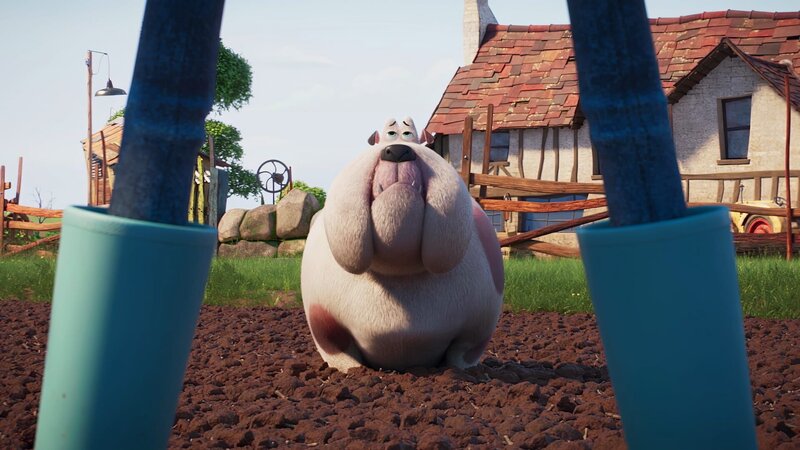 Bertha wird vom Bauern zu einem Hofhund ausgebildet.