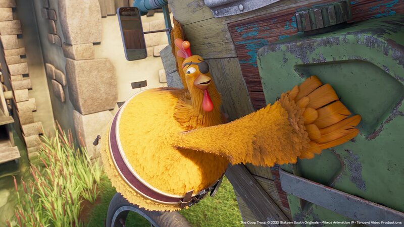 Clive bereitet sich auf die Bezirksmesse vor, bei der das schönste Schwein gekürt werden soll. Kurz darauf ruft Elvis bei der Coop Troop an. Seine Kopfhörer sind in den Fluss gefallen. Die Tiere machen sich ohne Clive auf den Weg. Als die Truppe mit ihrem Hühnerstall die Brücke erreicht, muss Flo ein Ausweichmanöver starten, um nicht mit Elvis zusammenzustoßen. Nun hängt das Mobil auf dem Brückengeländer fest und droht in den Fluss zu stürzen.