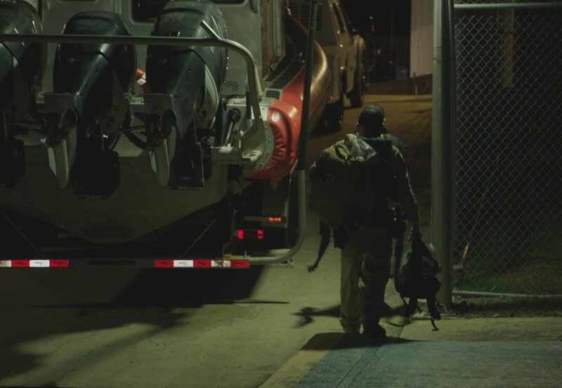 Ein CBP-Agent steht auf einem Wasserfahrzeug mit dem Meer im Rücken in Mayaguez, P.R. (Lucky 8 TV/Paul Taggart)