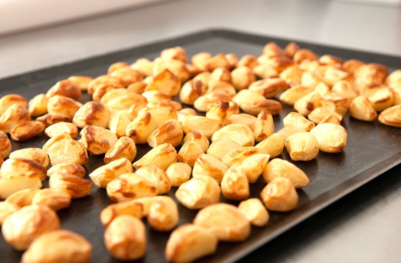 Knoblauch auf dem Blech für die Paté Toulouse