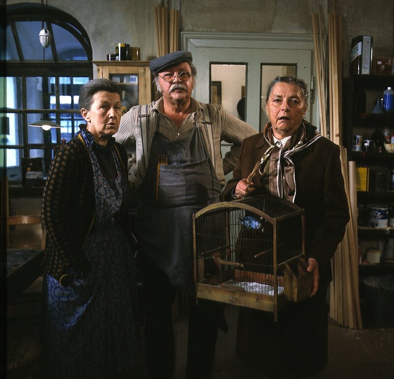 • v. li.: Hausmeister (Werner Zeussel), Nachabarin (Ingeborg Sassen-Haase), Meister Eder (Gustl Bayrhammer) und das Kind (Tobias Herrmann).