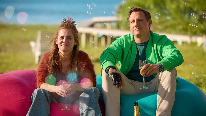 Charlie (Josefine Preuß) und Neiss (Patrick Kalupa) freuen sich über Leas 18. Geburtstag.