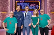 Moderator Kai Pflaume und seine Rateteam-Kapitäne Bernhard Hoëcker und Elton begrüßen in dieser Sendung den TV-Juror, Choreograf und Model Jorge González und die Popsängerin und Fernsehmoderatorin Victoria Swarovski.