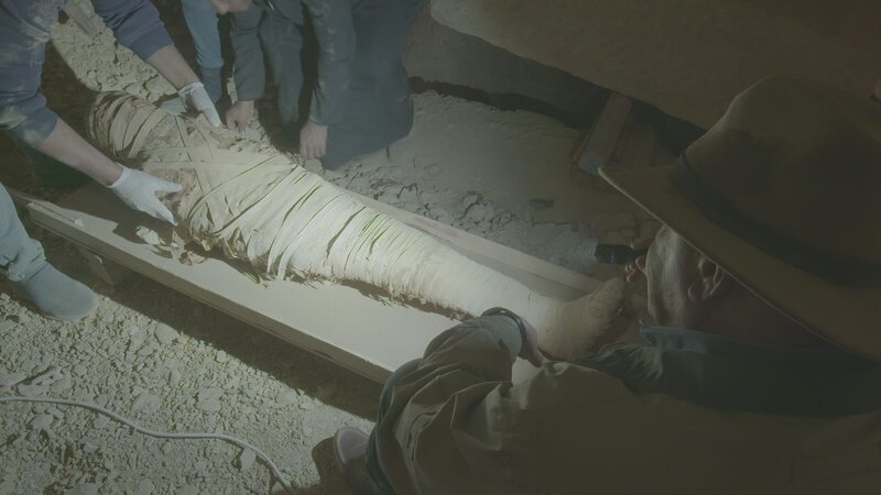 Wo ist Imhoteps Grab? Bis heute fehlt jede Spur von der letzten Ruhestätte des großen Bauherrn. Ägyptologe Zahi Hawass sucht im Wüstensand der Totenstadt Sakkara nach einer Antwort. Seit mehreren Jahrzehnten durchkämmt der Archäologe den Grund der südlich von Kairo gelegenen Nekropole. Immer wieder hat er dort spektakuläre Entdeckungen gemacht. Wird er nun Imhoteps Grabkammer finden? Auf seiner Suche nach dem Grab des Baumeisters der Djoser-Pyramide begeben sich Zahi Hawass und sein Team in die Unterwelt der Nekropole. Tief unter dem Wüstensand finden sie eine Grabkammer. Ein zehn Meter tiefer, senkrechter Schacht führt hinab. Vor 2500 Jahren wurde dort eine Mumie beigesetzt. Der Sarkophag ist aus Kalkstein und tonnenschwer. Der Mumie beigelegt liegt ein langer Stab. Befehligte die dort begrabene Person zu ihren Lebzeiten eine große Anzahl von Arbeitern? Ist also der Stock ein Symbol ihres sozialen Status zu Lebzeiten? Archäologe und Radiologe Basem Gehad durchleuchtet die Mumie. Es ist eine etwa 30-jährige Frau. War die dort aufwendig beerdigte Frau eine Hohepriesterin? Bei den Ausgrabungen auf dem Gelände von Sakkara macht Zahi Hawass' Team eine weitere Entdeckung: eine in einem einfachen Schilfsarg zur letzten Ruhe gebettete Mumie. Das Grab der einfachen Leute. Grabbeigaben, die etwas über ihr Leben verraten könnten, gibt es keine. Die Osteologin Afaf Wahba will mehr über den Verstorbenen erfahren. Anhand der Knochen bestimmt sie Alter, Größe und Geschlecht. Es handelt sich um eine Frau, 1,58 Meter groß und über 50 Jahre alt. Nur wenige Hundert Meter von der Djoser-Pyramide entfernt findet Zahi Hawass' Team ein weiteres Schachtgrab. 15 Meter unter der Erde steht dort ein imposanter, 25 Tonnen schwerer Kalkstein-Sarkophag. Im Inneren des Sarkophags befindet sich eine mit reichem Perlenschmuck beigesetzte Mumie. Anhand der Art ihrer Mumifizierung kann Zahi Hawass ihr Alter bestimmen: mindestens 4200 Jahre. Damit könnte sie die älteste je in Ägypten gefundene Mumie sein. Neben ihr liegt ein langer, mit Blattgold verzierter Stab. Die Hinweise sind eindeutig: Der dort bestattete Mann gehörte zur gesellschaftlichen Elite des Alten Reichs. Auch seinen Namen hinterließ er der Nachwelt. Auf dem Deckel des Steinsarges steht in roten Hieroglyphen "Hekaschebes" geschrieben. Zahi Hawass glaubt: Das Grab des Baumeisters Imhotep muss in der Nähe seines wichtigsten Bauwerks zu finden sein. Zwar wurden schon viele Grabkammern in der Umgebung der Djoser-Pyramide vor langer Zeit geplündert. Doch ein so genialer Architekt wie Imhotep müsste in der Lage gewesen sein, seine Wohnstatt im Totenreich vor den Grabräubern zu verbergen. Noch immer hat der ägyptische Wüstensand den größten Teil seiner archäologischen Schätze nicht preisgegeben. Die Suche nach Imhotep geht weiter.