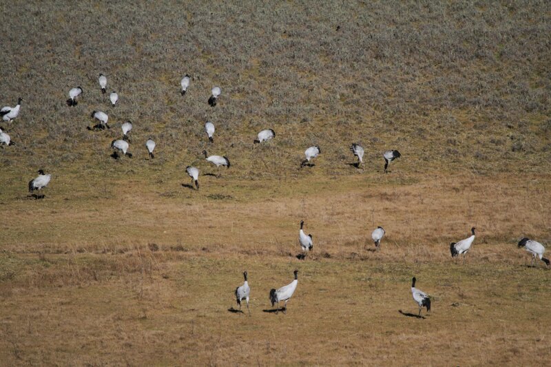 Über 400 Schwarzhals-Kraniche kommen jedes Jahr aus Tibet in das Phobjikha-Tal.