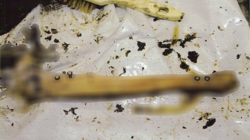 • Bei der Obduktion werden im Schienbein der Leiche vier Schrauben entdeckt. Niemand ahnt, dass diese Schrauben zur Identität der Toten führen werden.