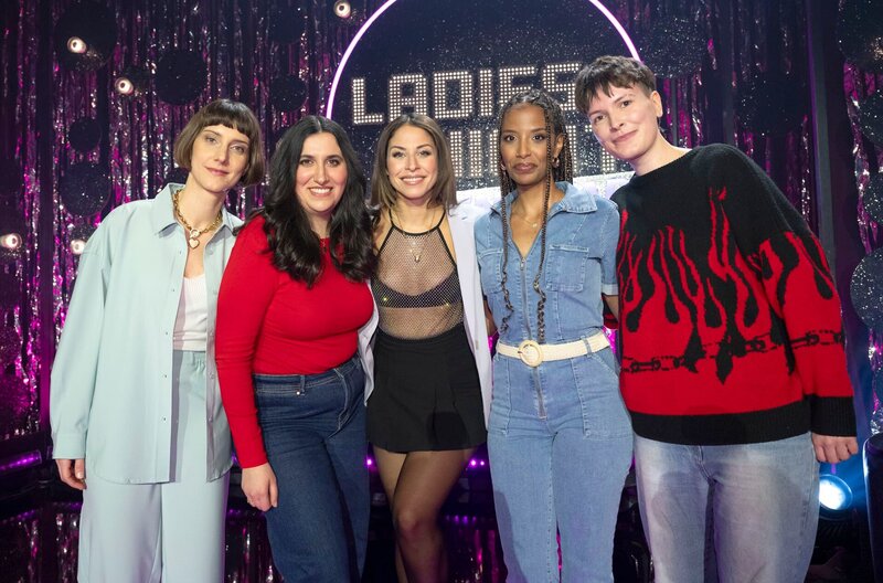 Moderatorin Negah Amiri (M) mit ihren Gästen v.l.n.r.: Sandra Schmidt, Pegah Meggendorfer, Raytschel, Lu Komma Klar.