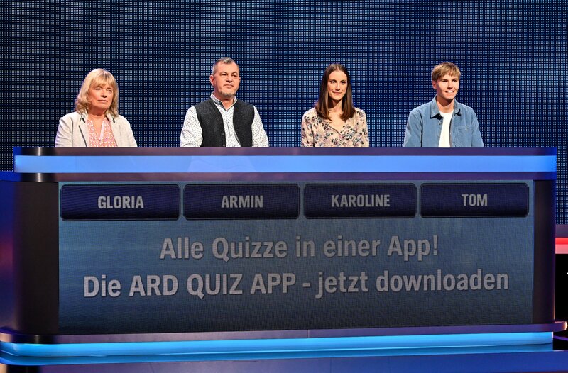 Die Kandidat:innen (v.l.n.r. am Panel): Gloria Mathern, Armin Hink, Karoline Stiblewski und Tom Schäfer.Bild: © ARD/Uwe Ernst