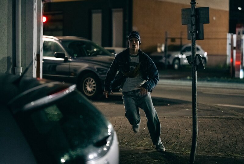 Finn Gebken (Caspar Hofmann) versucht, vor Hauptkommissar Peter Faber zu fliehen.