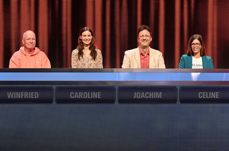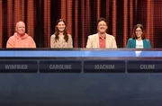 Moderator Alexander Bommes (M.) mit den Kandidat:innen: Celine Scarabin (l.), Winfried Kampmann (3.v.r.), Caroline Kühne (2.v.r.) und Joachim Buhrmann (r.).Bild: © ARD/Uwe Ernst