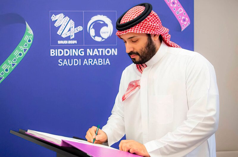Der saudische Kronprinz Mohammed bin Salman, auch bekannt als MBS, unterstützt die Bewerbung seines Landes, um die Ausrichtung der FIFA Fußball-Weltmeisterschaft 2034.
