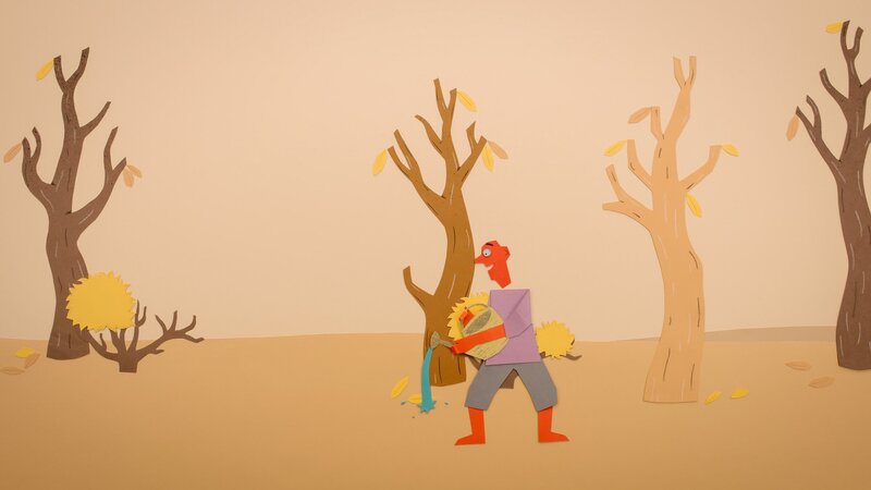 Im Papier-Land hat es schon lange nicht mehr geregnet. Die Bäume in Mister Papers Vorgarten sind deshalb fast völlig ausgetrocknet. Darum muss Mister Paper nun mit seiner Schere kreativ werden, um Regen herbeizuholen und die Pflanzen zu retten.