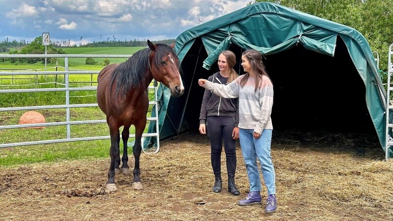 Pferdetrainerin Lisa (links) hat vor ein paar Jahren den Mustang Brownie gekauft. Seitdem ist sie ein großer Fan der wilden Pferde aus Amerika.