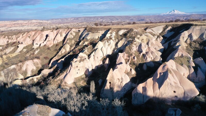 Seine Landschaft weist einzigartige, kegelförmige Felsformationen auf, die als "Feenkamine" bekannt sind. In den weichen Tuffsteinklippen des Göreme-Nationalparks lassen sich Höhlenkirchen und uralte Behausungen entdecken. Von frühen Christen wurden regelrechte Höhlenstädte in diese Felsen gegraben, in denen sie sich vor ihren Feinden versteckten. Manche der angenehm temperierten Höhlenhäuser sind bis heute bewohnt oder werden als Hotel genutzt.