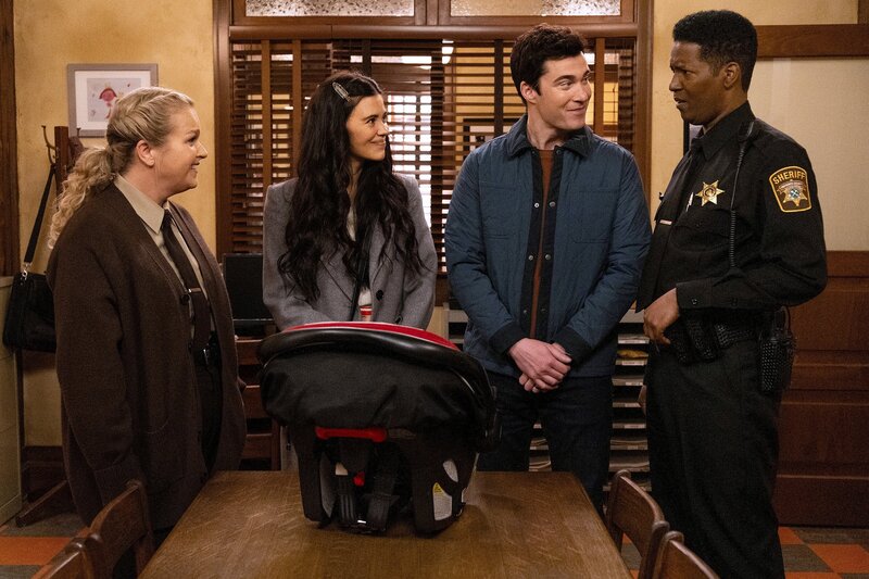(l-r) Elizabeth Bowen as Deputy Liv Baker, Meredith Garretson as Kate Hawthorne, Levi Fiehler as Mayor Ben Hawthorne, Corey Reynolds as Sheriff Mike Thompson
