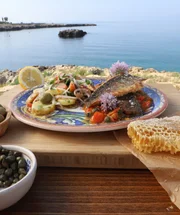 Mit seiner Vespa fährt Gino nach Salento und entlang der Adriaküste zum Hafen von San Foca. Hier trifft er einen italienischen Meister im Freitauchen. Auch Gino taucht ab und sucht unter Wasser nach Seebarschen für das Abendessen.