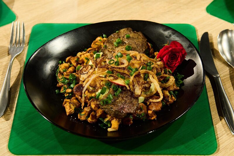- Leibgericht: Gebratene Wildleber mit geschmorten Zwiebeln und Äpfeln, Kartoffelpüree, Röstzwiebeln und gebratenen Pfifferlingen von Andrea WeimeisterBild: © ZDF und Gunnar Nicolaus
