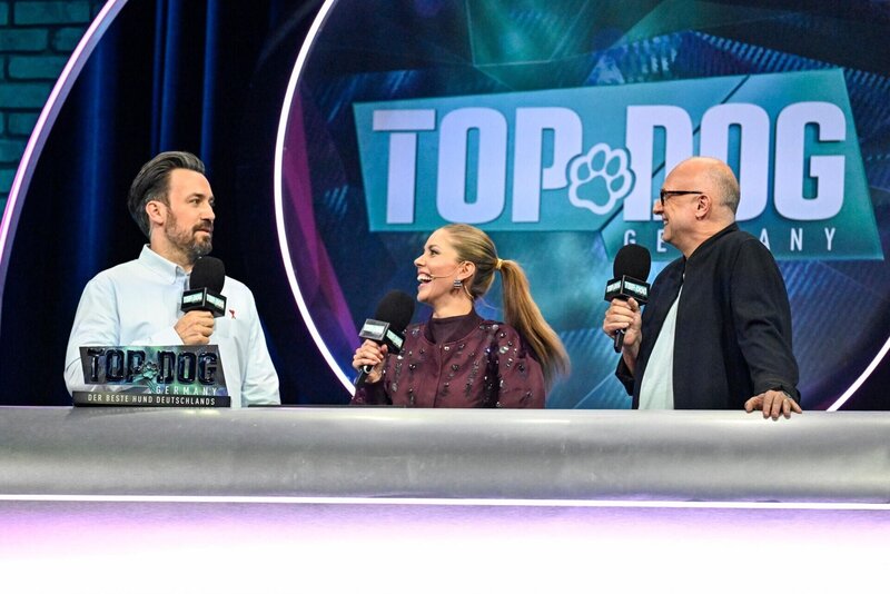 Fieldreporterin Victoria Swarovski mit den Moderatoren Jan Köppen (l.) und Frank Buschmann.