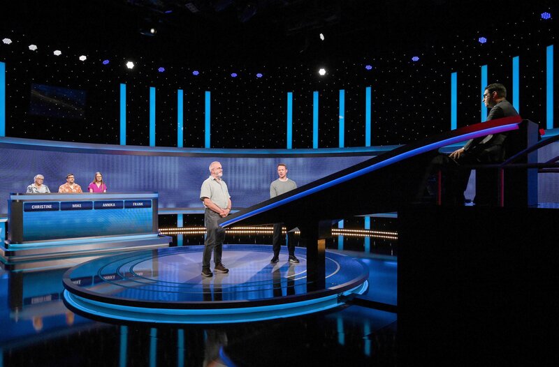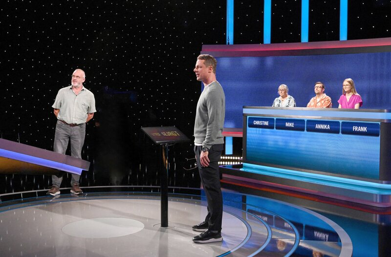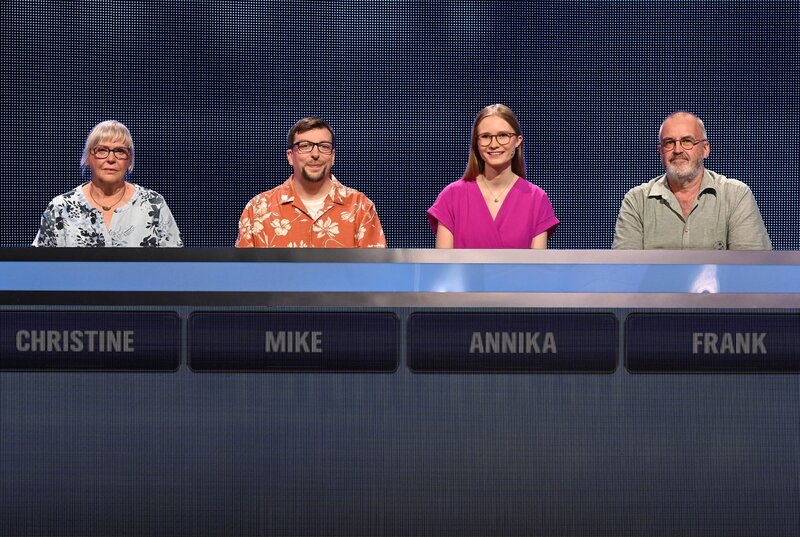 ARD GEFRAGT - GEJAGT FOLGE 898, "Alexander Bommes präsentiert beliebtes Quizformat", am Montag (25.08.25) um 18:00 Uhr im ERSTEN. Aufzeichnung zum ARD-Quiz „Gefragt-Gejagt“ Die Kandidaten (v.l.n.r. am Panel): Christine Kruse, Mika Madey, Annika Öynhausen, Frank Trodtfeld.Bild: © ARD/Uwe Ernst