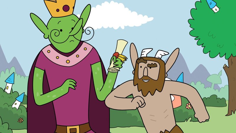 • Der Koboldkönig (links) darf bei den Helden wohnen. Ihm gefällt das Leben bei ihnen, und er gibt vor, ebenfalls als Held im Dienste des 'Rat des Glücks' sein zu wollen. Hufius (rechts) hat bereits einen Plan, wie er dem Koboldkönig die Mission vermiest.