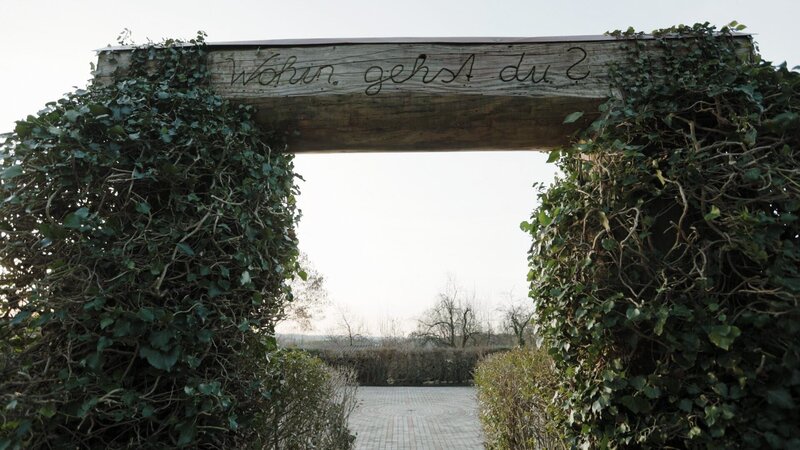 Der Schriftzug „Wohin gehst du?“ ist der Eingang ins Labyrinth vom „Haus der Stille“.