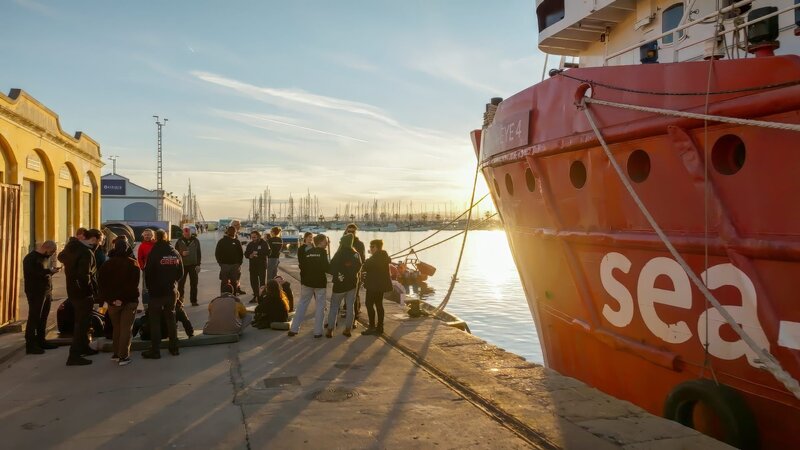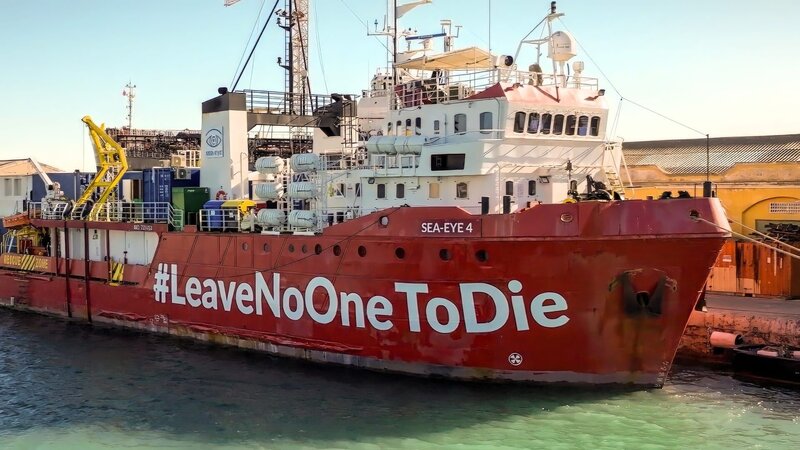 • Am Hafen in Spanien liegt das Rettungsschiff "SEA-EYE 4".
