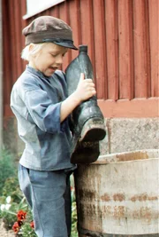 • Schon wieder hat der freche Lausbub Michel (Jan Ohlsson) etwas angestellt und hält sich vor dem Gebrüll des Vaters die Ohren zu.