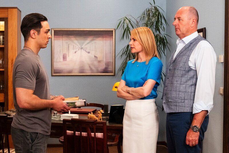 Uschi wirft Leon vor, dass er der schlechter Umgang für Franzi ist. Von links: Leon (Joel Akgün), Uschi (Silke Popp) und Hubert (Bernhard Ulrich).