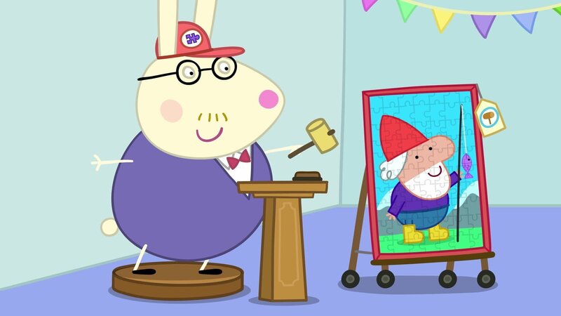 Peppa lernt beim Puzzle-Festival von Frau Esel die Kunst des Puzzelns. Opa Wutz ersteigert versehentlich ein Zwergen-Puzzle, was Oma Wutz erfreut. Peppa beruhigt die Aufregung, indem sie ein verlorenes Puzzleteil richtig zuordnet.