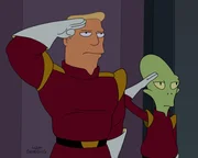 Ihr Einsatz ist gründlich schiefgegangen und Leela (r.) stürzt mit Zapp Brannigan (l.) auf die Erde, wo er sie glauben lassen will, dass sie die letzten beiden Menschen auf der Erde sind ...