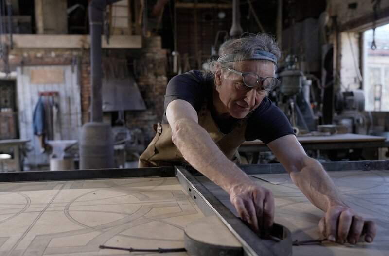 Der Schmied Peter Schöffel kann in seiner Werkstatt in Worms mit seinen nostalgischen Maschinen Eisen in jede gewünschte Form bringen. Seine Meisterstücke, jedes davon ein Unikat, sind maßgefertigt nach seinen Entwürfen und auf Wunsch der Kundinnen und Kunden. So ersetzte er das ursprüngliche Holztor einer alten Villa durch ein einfaches Tor aus filigranen Eisenstangen und Beschlägen.