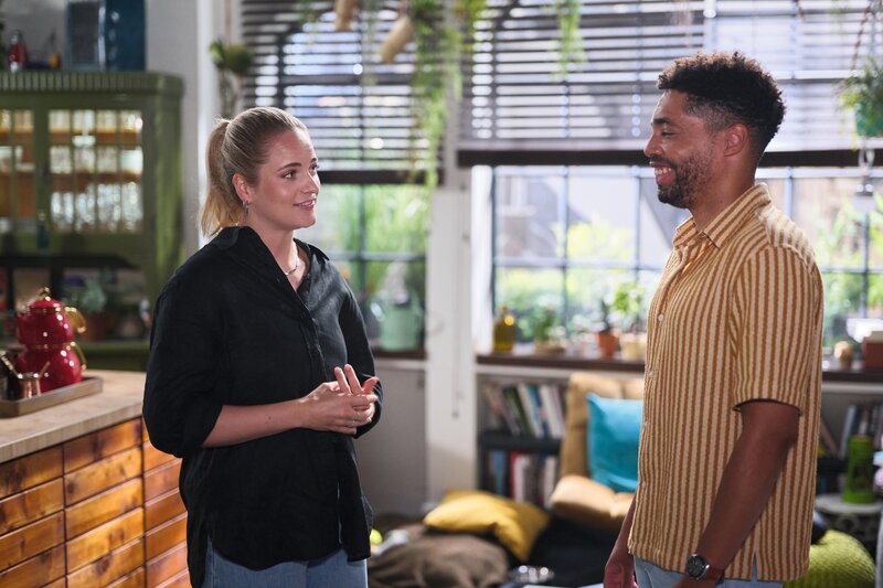Theo (Julius Dombrink) ist erleichtert, als Cecilia (Carina Koller) einen versöhnlichen Schritt auf ihn zugeht.