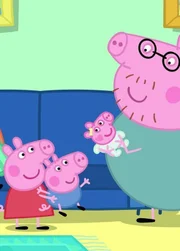 Peppa ist deprimiert, nachdem sie vergeblich versucht hat, Baby Evie zu halten. Nach missglückten Versuchen mit einem Teddy und Eiern zeigt Frau Mümmel, die erfahrene Hebamme, Peppa, wie man ein Baby sicher und richtig hält.