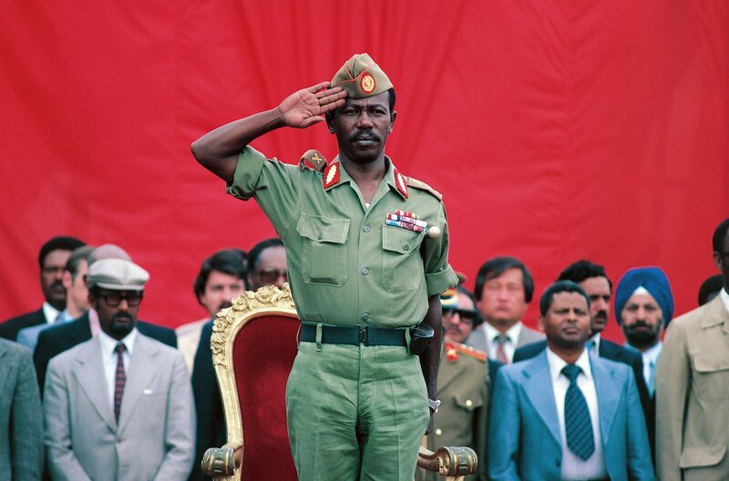 Äthiopische Revolution, 1974: Mengistu Haile Mariam verkündet, das Land nach den Prinzipien des Marxismus-Leninismus umgestalten zu wollen.