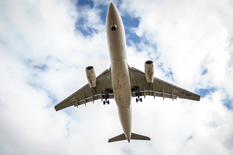 Die Unterseite eines Flugzeugs am Flughafen Melbourne. Der Flughafen Melbourne ist Australiens verkehrsreichster Flughafen mit jährlich über 35 Millionen Passagieren.