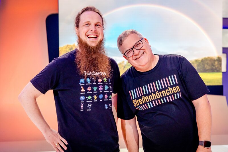 • Kinderbuchautor und Physiker Michael Büker (links) erklärt Elton (rechts) bei "1, 2 oder 3" wie Regenbögen entstehen.