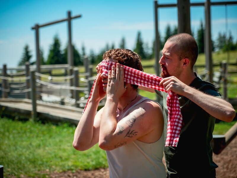 Single Christopher und Kandidat Franz gehen beim Beziehungstest auf Tuchfühlung.