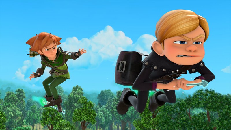 Tuck will für Robin einen Pfeil fertigbauen und holt sich dafür eine Feder von Katell. Er erwischt aus Versehen eine magische Greifenfeder und fliegt mit dem Zauberpfeil durch die Luft. Tuck landet in einem Baum. Mit seiner schlimmen Höhenangst ist er sehr froh, als ein Mann kommt und ihn rettet. Zu spät bemerkt er, dass es sich um den fiesen Dieb Landrin handelt, der ihm den fliegenden Pfeil klaut, weil er damit auf weitere Diebeszüge gehen will.
